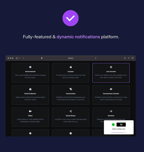 📊 Social Proof & FOMO Widgets: Boost engagement with social proof notifications.